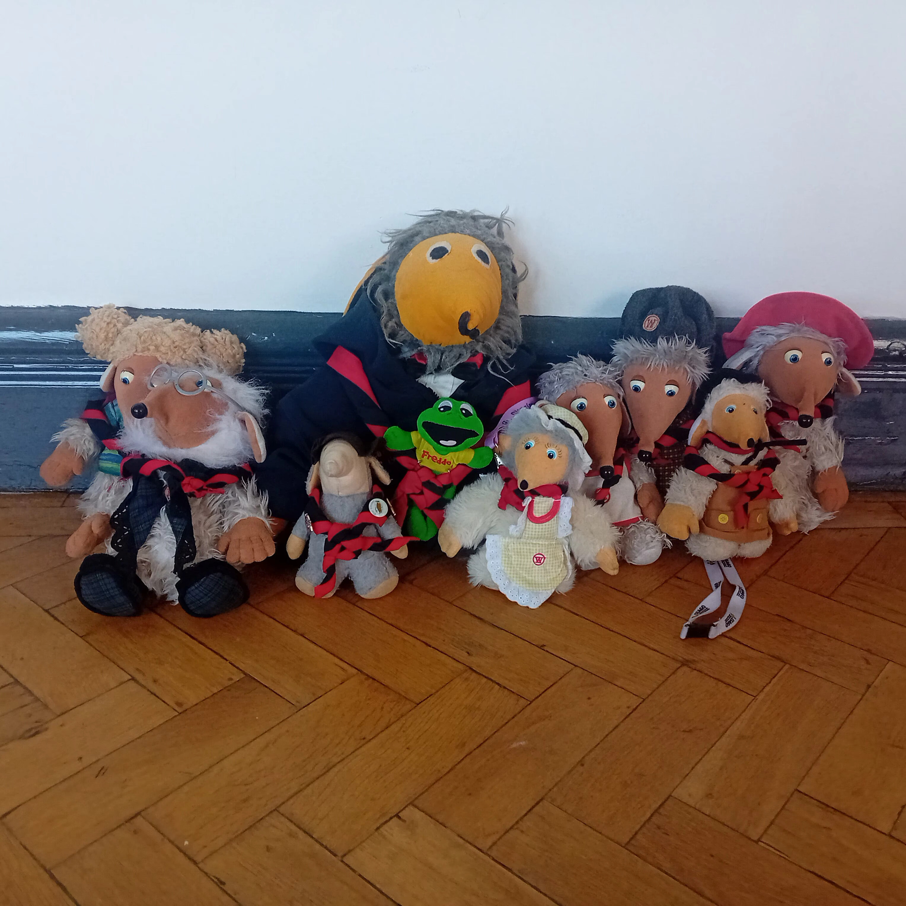 Scarface (non-stealable) - Our main mascot dates back to 1975, when he was purchased at a Rally and now belongs to the current Chair at any time. He is currently on his fifth face and is quite old so he is not stealable! He is the big one in the middle of the photo. Scarface also has a mascot's mascot Freddo from Chocolate Rally 2019 (also non-stealable).